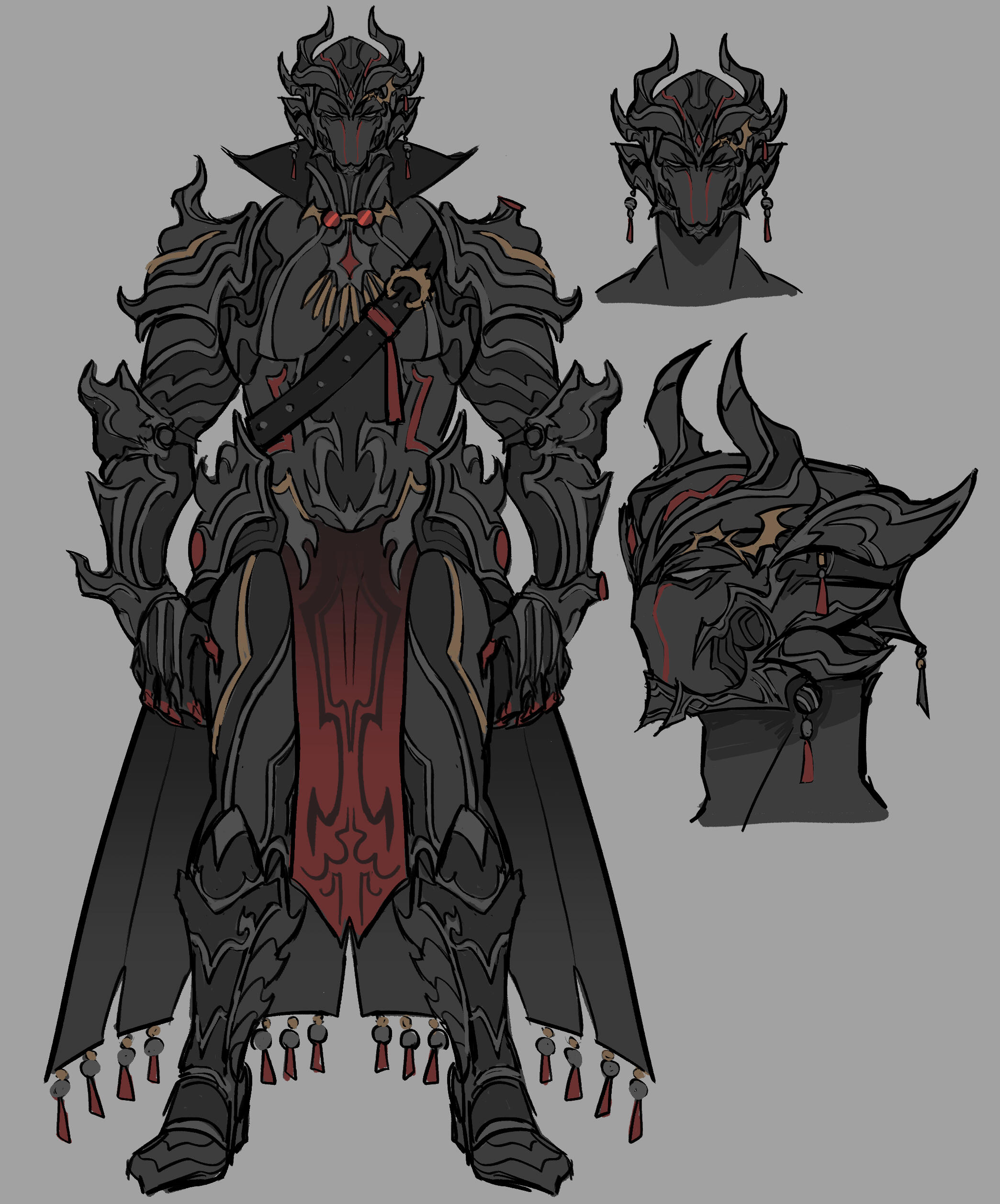 gear a visored burgeonet ornamented with large, vicious horns.
