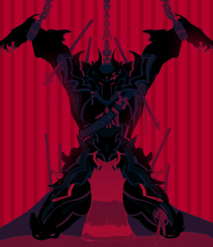 PERSONALITY A man dedicated to appearing as though he isn't a man at all. The knight orbits civilization with nary a word spoken; all cruel, ugly metal barbs, and a domineering intensity that chokes the air only half as much as the pungent stench of iron. He had, perhaps, at one point in his life, been more than the ancient oath he carries— but for all he shows, the armor may as well be bereft of an entity at all.